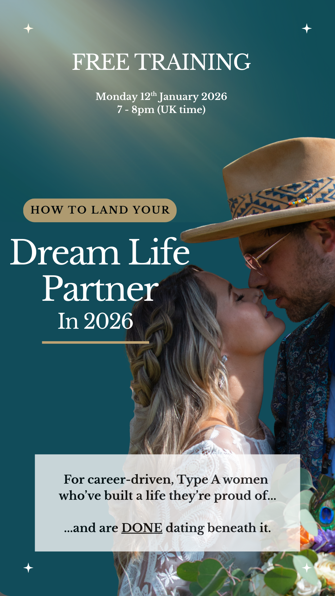 Inside this free masterclass, I’ll show you how to land your dream life partnership - without burning out on dating apps, over-analysing text messages, or going on endless dead-end dates.